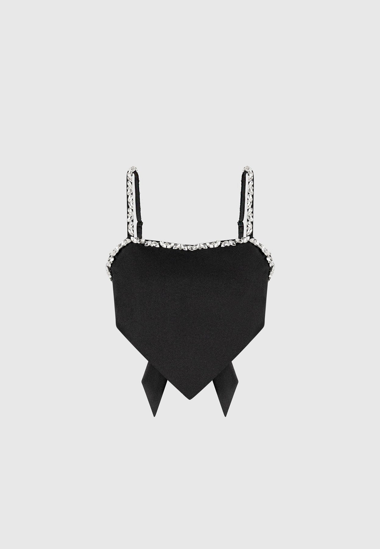 Enhance your wardrobe with our Embellished Strap Handkerchief Top. The glamorous detailing adds a touch of elegance, while the self tie at the back allows for a customisable fit. Enjoy the added convenience of adjustable straps for ultimate comfort and style.